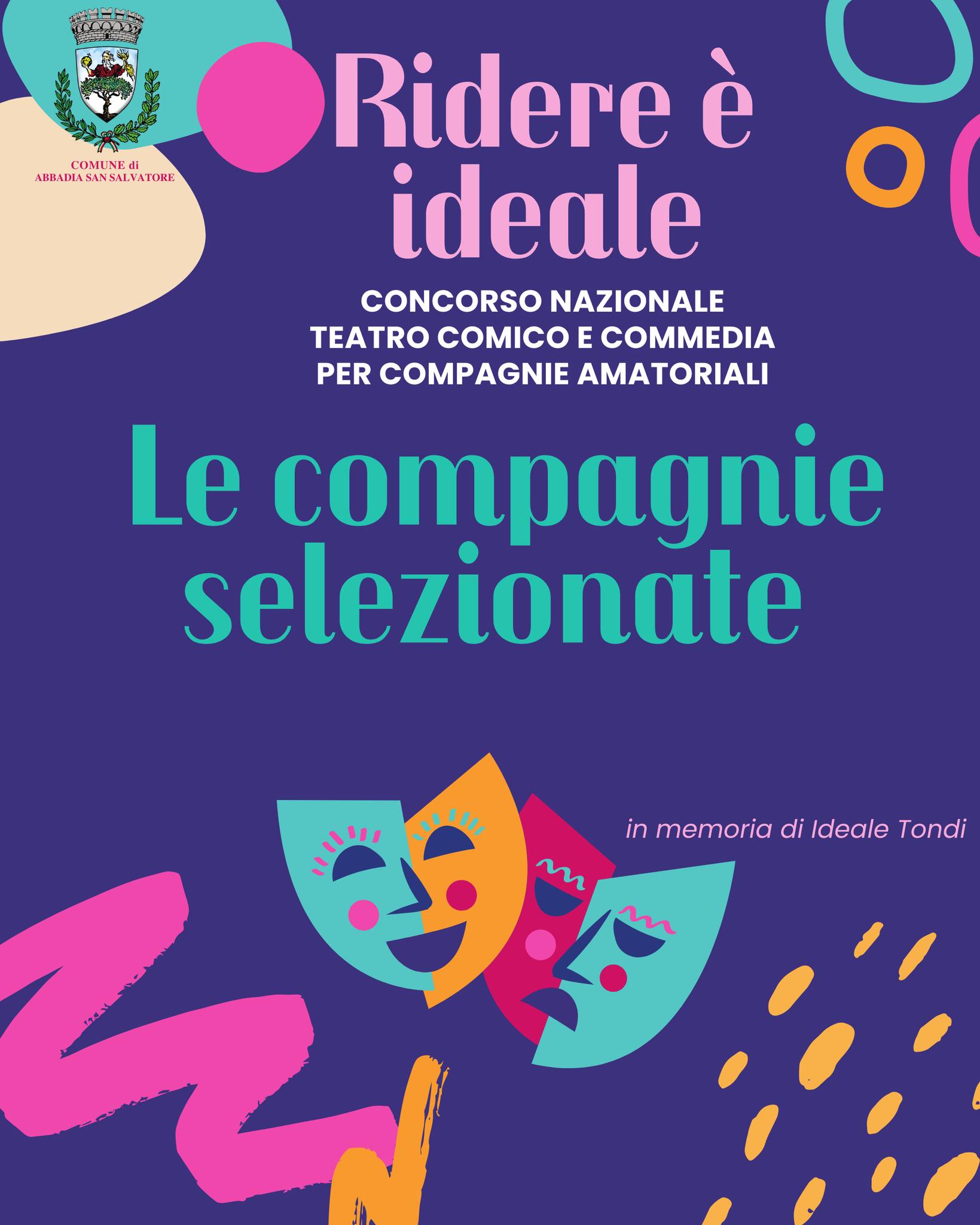 Sono state ufficialmente selezionate le compagnie teatrali che parteciperanno alla prima edizione del concorso nazionale di teatro comico e di commedia - Ridere è Ideale - promosso dal Comune di Abbadia San Salvatore.